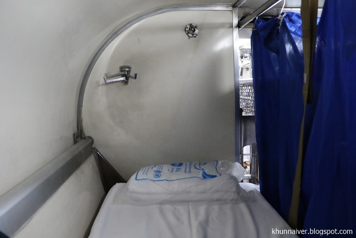 เตียงนอนชั้นบน ค่อนข้างจะคับแคบไปสักหน่อย พอเหยีดแข้งขาและนอนพักหลับได้อยู่ค่ะ แต่จะให้หลับสนิท แบบหลับลึก คงไม่ขนาดนั้น |