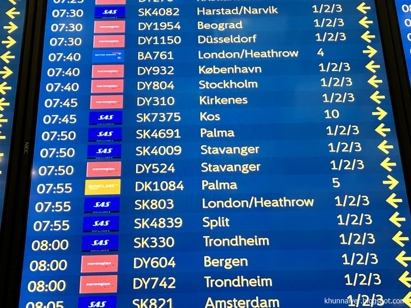 จากนั้นก็รีบวิ่งเลยค่ะ เพื่อมาทำการเช็คอินกับเจ้าหน้าที่ และดูเที่ยวบินที่จะไป North cape ทริปนี้ ต้องเปลี่ยนเครื่อง 2 ครั้งเลยค่ะ